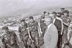 Hrvaški predsednik Franjo Tuđman med vojaki, ki so v Operaciji Nevihta že 5. avgusta 1995 osvojili Knin, glavno mesto Republike Srbske krajine / Foto: Wikipedija