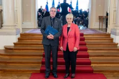 Dr. Thomas Potokar na sprejemu pri predsednici republike Nataši Pirc Musar, kjer je prejel častno odlikovanje za svoje humanitarno delo v Gazi / Foto: Matic Zorman
