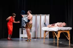 Igralska zasedba v predstavi Nor... nor ... norišnica na predpremieri pretekli petek / Foto: Nik Bertoncelj