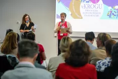Andreja Urbanec, predsednica Sekcije za šolske knjižnice, je tudi nagovorila udeležence simpozija. / Foto: Tina Dokl