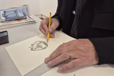 »Spet drugače sem ob obisku mladih z Gimnazije Franceta Prešerna ali Osnovne šole Predoslje na njim zanimiv način poskušal predstaviti, kako se gradi likovni jezik. Animiral sem jih z risanjem, prav v ta namen pa sem k sodelovanju povabil tudi kolega iz društva, odličnega risarja Mitjo Bokuna, ki je na licu mesta skiciral portrete nekaterih prisotnih,« je povedal Klavdij Tutta, v katerega odprtem ateljeju je bilo vseskozi živahno.