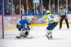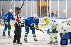 Na revijalni dobrodelni tekmi so se predstavili nekdanji in sedanji slovenski hokejski asi. / Foto: Nik Bertoncelj