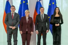 Predsednica Republike Slovenije Nataša Pirc Musar in Aleš Musar ter predsednik vlade Robert Golob in Tina Gaber Golob so v ponedeljek na Brdu pri Kranju gostili tradicionalni sprejem za diplomatski zbor ob začetku novega leta. V slavnostnem nagovoru je predsednica Nataša Pirc Musar opozorila na nevarnosti vse bolj nepredvidljivega mednarodnega okolja in slabljenja multilateralizma. »Dialog in mirno reševanje sporov na podlagi mednarodnega prava nadomešča uporaba sile, ki postaja malodane običajno sredstvo zunanje politike številnih držav.« Ob tem je poudarila, da je veliko problemov tega sveta skupnih in jih je treba tudi reševati skupaj. »Zato moramo podpirati mednarodne institucije kot forume za pogajanja in mednarodno pravo kot sestavni del sodobne mednarodne ureditve za mirno reševanje sporov.« Kot ključna izziva sodobnega sveta je v ospredje postavila umetno inteligenco in podnebne spremembe. Govor je sklenila s pozivom k povezovanju med državami, ki si prizadevajo »za odločno in neselektivno podporo miru in temeljnim načelom mednarodnega prava«. Premier Golob pa je izrazil ponos na dosežke slovenske ekipe pri Organizaciji združenih narodov pod vodstvom veleposlanika Samuela Žbogarja in uspehe v Varnostnem svetu v zadnjih dveh letih. »Žal tudi po dveh letih uradnega prizadevanja Slovenije v Varnostnem svetu, da bi načela miru, svobode, človekovih pravic in mednarodnega prava obveljala v svetu, ne moremo biti zadovoljni s tem, kako se svet razvija,« je poudaril in dodal, da je čedalje več držav, ki mednarodno pravo odrinjajo na stran, pravila v mednarodni skupnosti pa se pišejo na novo. Dodal je še, da Slovenija želi biti glas razuma, ki ne bo mahala z vojaško močjo, bo pa pozivala k mirnemu reševanju notranjih sporov.