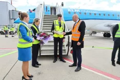 Na brniškem letališču so pozdravili prihod letala KLM. / Foto: Tina Dokl