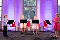 Radovljica – Z zaključnim koncertom komornih skupin se je v nedeljo v Baročni dvorani Radovljiške graščine končal letošnji mojstrski tečaj za kljunasto flavto, ki ga v času Festivala Radovljica vodi priznana flavtistka, sicer domačinka, profesorica Mateja Bajt.