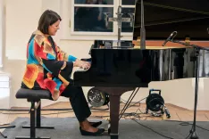 Na radovljiškem recitalu se je predstavila s programom preprostega naslova Adagio, a globoke in intenzivne vsebine, v okviru katerega je poslušalce navdušila z vrhunskimi izvedbami del Mozarta, Debussyja, Messiaena, Bacha, Schönberga, Liszta in Chopina. Občinstvo v polni dvorani je uro in pol trajajoči koncert spremljalo z intenzivno, neprekinjeno pozornostjo od prvega tona do zadnjega takta.