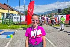 Med njimi je tudi uspešna športnica, 19-letna Kamničanka Nea Štebe. Tokrat se ji je okoli vratu zasvetila srebrna kolajna za tek na 400 metrov, sicer pa je na marčevskih zimskih svetovnih igrah Specialne olimpiade v Torinu v teku na smučeh pritekla zlato medaljo. »Zadovoljna sem z rezultatom. Veliko sem trenirala v šoli in tudi doma. Danes sem zelo uživala, čeprav je moja najljubša disciplina tek na smučeh,« nam je povedala Nea.