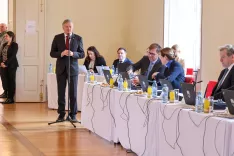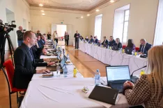 Vlada se je za začetek regijskega obiska na Gorenjskem sestala na redni (terenski) seji v Radovljiški graščini. / Foto: Tina Dokl