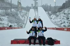 Tudi drugi dan tekmovanja se je naša ekipa veselila lepega uspeha. Na zmagovalnem odru so za novo donenje Zdravljice poskrbeli Taja Bodlaj, Ajda Košnjek, Enej Faletič in Urban Šimnic, ki so postali najboljša mešana ekipa v smučarskih skokih. Druga je bila Norveška, tretja pa Avstrija.