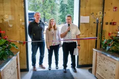 Pred nekaj dnevi je Gostišče Jezersko uradno odprlo svoja vrata. Slavnostno sta trak ob odprtju prerezala gostitelja Renata in Aleš Petek, na pomoč pa jima je priskočil tudi arhitekt Aleš Hafner (levo). / Foto: Tina Dokl