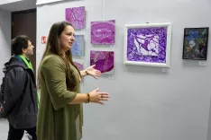Veliko pozornosti so pritegnile fotografije, ustvarjene s pomočjo mikroskopa, ki jih je naredila Nina Šterman Bodlaj (na fotografiji). / Foto: Tina Dokl