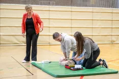 Jesenice – Na Gimnaziji Jesenice so v četrtek pripravili priložnostno slovesnost ob namestitvi novega avtomatskega zunanjega defibrilatorja v preddverje šole. Aparat, ki rešuje življenja, je podaril Rotary klub Bled. »Statistike govorijo, da vsak dan zaradi nenadnega srčnega zastoja umre od pet do šest ljudi. Hitro ukrepanje lahko poveča možnost preživetja za več kot petdeset odstotkov. Defibrilator v šoli ima tudi širši vzgojno-izobraževalni pomen, spodbuja namreč zavedanje o pomembnosti prve pomoči, ozavešča o zdravju srca in krepi občutek odgovornosti do sočloveka,« je na dogodku poudaril predsednik Rotary kluba Bled Mitja Karun. Donatorjem sta se zahvalila tako ravnatelj gimnazije Aljoša Erman kot župan Jesenic Peter Bohinec.