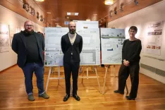 Zmagovalni elaborat sta izdelala Matija Miler (levo) in Gašper Fabijan, ob njiju še Anja Šuler iz arhitekturnega studia Raum. / Foto: Tina Dokl