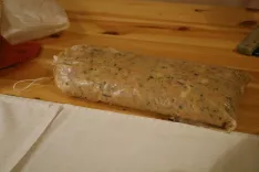 Najbolj razširjena priprava velikonočnega budla pa je zagotovo v umetnem črevesu ali danki in za tokratni prikaz je Tavčar uporabil umetno črevo. Pokazal je tudi, kako ga napolniti. »Črevo napolnimo do treh četrtin, na enem koncu ga zavežemo, na drugem ga jaz spodviham. In pazimo, da ga napolnimo s čim manj zračnimi mehurčki.«