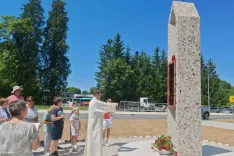 Ob blagoslovu nove kapelice Srca Jezusovega je za krajši kulturni program poskrbel domači cerkveni pevski zbor, župnik Pavel Okoliš pa je povedal tudi nekaj o preteklosti in o prvi kapeli, ki je stala na drugem mestu, ob takrat še lesenem mostu. / Foto: Alenka Brun