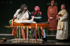 Pred pokopom je truplo pusta ležalo v avli doma, kjer so obiskovalci lahko izreki sožalje jokajoči vdovi Johani – upodobil jo je Ljubo Kovačič. V nadaljevanju se je občinstvo zabavalo ob obdukciji, ki jo je na odru dvorane opravil dr. Šintar (Matija Koritnik). Ugotovil je, da glede na majhno količino možganov smrti ni mogla povzročiti možganska kap pa tudi da so organi v slabem stanju in da jih ne bodo mogli prodati. »Tako je bil dober,« je ob pustu jokala vdova, a župnik, v katerega se je vživel Marko Mervič, ga je opisal kot falota najhujše vrste. Menda je bil kriv prav za vse – tudi za to, da je v bifeju namesto mlade natakarice stregla stara. Pusta so v sprevodu pospremili iz dvorane in ga zažgali, a smo na koncu kljub temu slišali, da se zna zgoditi, da bo baraba že prihodnje leto nazaj. In kot vse kaže, bržkone tudi bo …
