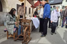 Med stojnicami se je vse dopoldne vila vrsta pokuševalcev in kupcev, veliko zanimanja je požela tudi Marija Bevk iz Davče, ki je predla na kolovratu z dvema letnicama. »Na tem sejmu sem prvič na povabilo Društva podeželskih žena Selške doline, kolovrat je iz muzeja v Davči, svojega še nimam. Na njem sta zapisani letnici 1943 in 1952, morda je bil narejen leta 1943, 1952. leta pa so ga obnovili …« je razmišljala.