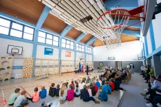 Radovljica – V četrtek so v podružnični šoli v Begunjah pripravili priložnostno slovesnost ob odprtju prenovljene telovadnice. Ta ima sedaj popolnoma prenovljena tla, ki so hidroizolirana in prekrita z elastičnim športnim podom, s parketom kot zaključnim slojem. V sklopu obnove so bili zamenjani še radiatorji in vrata telovadnice. Ta je zdaj tudi povsem na novo opremljena z mehkimi stenskimi oblogami, letveniki, košarkarskimi konstrukcijami in plezalno steno.