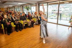 Lep dogodek, ki ga je s svojim plesnim nastopom obogatila Eva Pirnat, je bil prav ta v Domu Petra Uzarja. Tečejo, tečejo nitke življenja ... – kot jo je v plesni korak potegnila pesem Tržičanke Marije Ahačič Pollak.