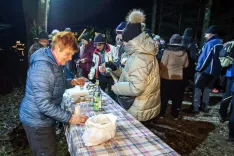 Zgornje Duplje – Pohodniki so do cilja prihajali iz različnih smeri, največ pa se jih je zbralo v skupini, ki se je ob sedmih zvečer odpravila izpred gasilskega doma v Zgornjih Dupljah. Pot je urejena, dobro vzdrževana in nezahtevna, zato je primerna za vse generacije, od družin z otroki do starejših pohodnikov. Noč so razsvetljevale naglavne svetilke in bakle, ki jih je nosila večina udeležencev ter tako ustvarila prav posebno vzdušje v gozdu. Predsednik društva Rudi Dovžan je ob tem poudaril, da jih dobra udeležba razveseli vsako leto. »Okoli 500 pohodnikov se je letos zbralo pri Krivi jelki. Izjemno smo veseli, da se ljudje vsako leto znova vračajo. V novem letu si želimo, da bi Krivo jelko obiskalo še več ljudi in da bi se glas o tem dogodku razširil še širše,« je povedal. Ob tem ni skrival olajšanja glede vremena: »Od srede dalje smo ves čas pogledovali v nebo in upali, da bo brez dežnih kapelj. Na srečo je vreme zdržalo in nam bilo letos ponovno naklonjeno.«