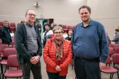 Člani organizacijskega odbora praznovanja: Robert Prezelj, Majda Demšar in Tomaž Weiffenbach. Na sliki manjka Laura Rant, ki je bila odstotna. / Foto: Simon Benedičič