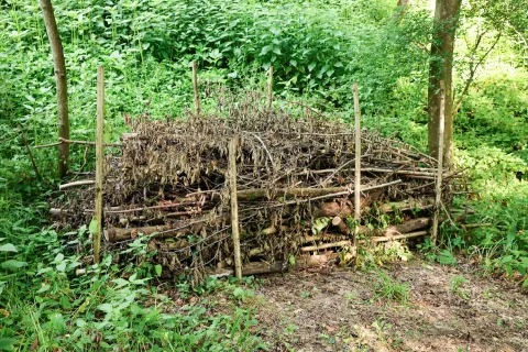 Zeleni hotel predstavlja naravno strukturo iz odmrlega vejevja, ki omogoča zatočišče za male gozdne živali. / Foto: Tina Dokl