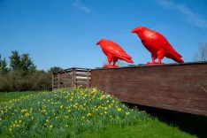 Kamnik – Tri metre visoka kričeče zelena skulptura pingvina s plastenko vode na hrbtu, rdeče obarvani orjaški psi, severni medvedi in ptice. V središču Kamnika, predvsem pa v bližnjem Arboretumu v Volčjem Potoku, te dni začudene poglede mimoidočih vzbujajo nenavadne skulpture, dela belgijskega umetnika mednarodnega slovesa Williama Sweetlova, ki sodeluje v ambicioznem umetniškem projektu.