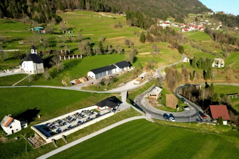 Pogled na spomenik, pokopališče in muzej v Dražgošah / Foto: K. L.