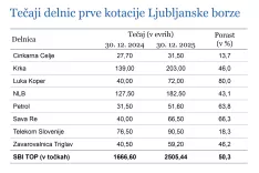 Na Ljubljanski borzi je bil lani bikovski trend, na kar najbolje kaže indeks SBITOP, ki se je zvišal za več kot polovico, s 1666,60 na 2505,44 točke. Štirinajstim delnicam, med drugim tudi vsem delnicam prve kotacije, se je tečaj zvišal, le trem se je znižal. Najbolj se je lani tečaj zvišal delnicam Salusa (za 82 odstotkov), Luke Koper (80,0), Cetisa (68,3), Save Re (66,3), Petrola (63,8), Zavarovalnice Triglav (46,2), Krke (46,0), NLB (43,1), Telekoma Slovenije (18,3) in Cinkarne Celje (13,7). Tečaj se je znižal delnicam Melamina (za 20,5 odstotka), Uniorja (6,7) in Datalaba (2,5).