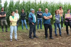 Kmetje in drugi udeleženci ob ogledu poskusa s koruznimi hibridi na Žabniškem polju / Foto: Cveto Zaplotnik