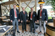 Okus so ocenjevali člani Društva barmanov Slovenije: z leve spredaj Edin Halačević, predsednik društva Rok Dobnikar, zadaj Bogdan Deželak in Anže Šmid. / Foto: Tina Dokl
