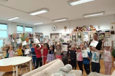 Prvošolci s slikanico, ki so jo prejeli ob letošnjem začetku bralne značke / Foto: arhiv šole