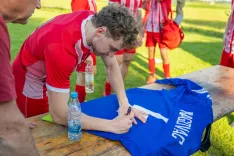 Nogometno igrišče Pod farovžem v Podbrezjah je tudi letos gostilo tradicionalno dobrodelno nogometno tekmo med člani slovenske hokejske reprezentance in nogometaši FC Podbrezje.