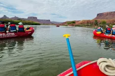 A ker seveda sredi vročega avgusta ni bil čas, da bi kaj prida premišljevali o smučanju, smo za svoj naslednji cilj izbrali rafting na reki Kolorado. Predstavljali smo si silne brzice mogočne reke, saj nas je nekaj že imelo izkušnjo iz naše Soče. Toda turiste po Koloradu seveda zapeljejo po zelo mirnem delu. So pa bili zato razgledi z rafta po divji skalnati pokrajini res nekaj posebnega. Tako ni čudno, da so na tem delu snemali veliko vesternov z Johnom Waynom v glavni vlogi. (Se nadaljuje)
