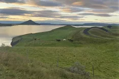 Sčasoma sva prispela do naslednjega kampa ob Mývatnu. Ob večeru se je vreme zjasnilo in pokrajina je zaživela kot oder. Tam sva si ogledala največji krater na svetu. Poleg njega je jezero, iz katerega so gledali »učbeniški« vulkani. Ponovno nisem mogel verjeti, kako se mi potovanje odvija. V avtu, ki mi je ustavil, s šoferjem, ki sem ga poznal dva dni, sem naredil tristo kilometrov, pred očmi pa so se mi odvijali neverjetni scenariji.