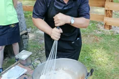 V nadaljevanju smo izvedeli tudi, da ajdova moka hitro nabrekne in je lažje prebavljiva. »To je masunjek po jezersko,« je pojasnil Milošič. »Medtem ko na drugih planinah uporabljajo različno moko, lahko koruzno, belo, tudi s pirino smo ga že poskusili pripraviti. Je pa seveda takšen drugačne barve in tudi okusa.«