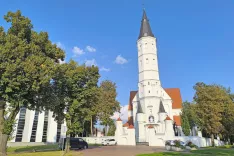 Do Šiauliaija nas je ločilo le še deset kilometrov. Po kolesarski stezi ob glavni cesti smo hitro prispeli v središče četrtega največjega litovskega mesta, kjer izstopa mogočna katedrala sv. Petra in Pavla.