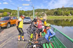 Kot vsak dan smo bili dogovorjeni za opoldanski odmor in malico. Spremljevalna kombija sta našla zavetje v senci pod mostom, kjer se rečica Dubysa izliva v mogočni Nemen. Seveda kombijev nismo opazili, čeprav smo se peljali tik nad njima. Navigacija je hitro pokazala napako. Obrnili smo, se vrnili po mostu in poiskali kraj, kjer nas je čakalo okrepčilo.