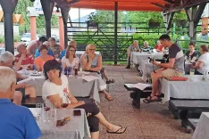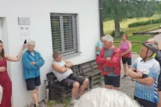 Ogledali smo si tudi cerkev sv. Janeza Krstnika, ki so jo zgradili ob koncu dvajsetega stoletja na temeljih cerkve, ki je bila porušena leta 1954. Prijazni župnik Jože Milčinovič nam je povedal, kako danes živijo ljudje v teh krajih in kako so zgradili novo cerkev na temeljih stare. Pokazal nam je tudi pot k Reškemu jezeru. Ko so zajezili Reški potok z betonskim jezom, je nastalo dolgo in ozko jezero – Reško jezero. Okolica močvirnate vode je dom številnim živalim in najbolj znani prebivalec je orel belorepec, ki tukaj gnezdi. Domačini so uredili Orlovo pot, ki je primerna tudi za družine z majhnimi otroki, saj je hoje približno eno uro. Na poti nazaj v Kočevje smo si v vasi Novi Lazi ogledali staro pokopališče in se nato ob vznožju hriba Stojna po makadamski cesti spustili proti mestu. Spust po makadamu je vedno zahteven, saj se lahko zgodi, da kolesarju pesek spodnese prvo kolo. Če ob tem še na hitro zavre, se spust konča s padcem. Na srečo so se naši kolesarji spustili brez težav in se ustavili še ob MTB trail centru Kočevje ter si ogledali nekaj drznih skokov mladih fantov z gorskimi kolesi. Za tiste, ki si želijo daljših adrenalinskih spustov, so organizatorji priskrbeli prevoz s kombiji do bližine razvalin gradu Fridrihštein. Najdaljši spust s kolesom po urejenih hribovskih stezicah (trailih) je dolg 2300 metrov in kolesarji lahko izbirajo med različno zahtevnimi spusti. Mi smo raje odkolesarili do prenočišča, se osvežili v jezeru in po večerji zapeli še nekaj lepih slovenskih pesmi. In potem šli kmalu spat, saj nas je naslednji dan čakala najdaljša pot skozi Kočevske gozdove.