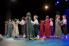 Cerkljanska folklorna skupina je na petkovem Večeru folklore nastopila z dvema spletoma gorenjskih plesov: Cerkljanska tržnica (na sliki) in Na ličkanju ter s spletom prekmurskih plesov Pozvačin. / Foto: Primož Pičulin