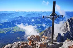 Mi se bomo tokrat podali na najvišji vrh pogorja Wilder Kaiser, na vrh Ellmauer Halt, 2344 m n. m. Izhodišče vzpona je parkirišče na planini Wochenbrunner Alm nad vasico Ellmau. Avtocesto proti Salzburgu zapustimo na izvozu za Bischofshofen, nato pa nadaljujemo do kraja Ellmau, kjer zavijemo proti omenjeni planini. Gorska cesta na koncu je plačljiva, pet evrov na dan. S planine se odpravimo v smeri koče Gaudeamus, ki je oddaljena približno pol ure hoda. Pot je nezahtevna. Koča ponudi fantastičen razgled na vrhove, kot so Ellmauer Halt, Karlspitzen in Ellmauer Tor. Od koče nadaljujemo po poti 812/822 proti koči Gruttenhütte preko Klammlwega. Ozka pot, ki vodi skozi strmo, a fascinantno sotesko, je zavarovana z lestvijo in nekaj metri jeklenice. Ko smo izven zavarovanega dela, nadaljujemo levo čez melišče, desno je vstop v zahtevno ferato, za katero so potrebne izkušnje. Nadaljujemo po ozki in strmi stezi, nad nami pa so jeklenice, ki predstavljajo most na ferati. Ko izstopimo iz strmega dela, nas do koče Gruttenhütte (1620 m n. m.) čaka le še nekaj metrov po ravnini. Koča je tudi izhodišče za vzpon na najvišji vrh. Od koče nadaljujemo najprej strmo proti Ellmauer Halt (držimo se leve poti), ki kmalu doseže zagruščeno krnico Hochgrubach. Ko dosežemo steno, pot zavije levo in se strmo vzpne. Ko pridemo do prvih jeklenic, se opremimo s samovarovalnim kompletom, pasom, čelado, priporočam tudi feratarske rokavice. Vstopamo v ferato Gamsängersteig, ki ima oceno B/C. Ko dosežemo t. i. Jägerwand, smo v delu, kjer je 70 dolgih skob, po katerih napredujemo. Zgoraj je jeklenica, na katero se vpenjamo. Stena visi navzven in varovanje je nujno. Pot poteka tik pod oz. ob Rdeči škrbini. Od tukaj dalje so strmi prehodi odlično zavarovani. Nato pridemo do razcepa poti. Navada je, da se desna pot uporabi za vzpon, leva pa za sestop. Desna se strmo povzpne, potem pa sledi zelo izpostavljen raz. S pomočjo jeklenic pridemo do skalne terase. Po nekaj skalnih stopnjah smo pri zasilnem bivaku Babenstuberhütte, ki leži tik pod vrhom. Še malo in smo na vrhu najvišjega vrha pogorja Wilder Kaiser, Ellmauer Halt. Z vrha se nam odpre lep razgled na Zillertalske Alpe z Olpererjem, Stubajske Alpe, Visoke Ture (Großvenediger), ob lepem vremenu celo na Dolomite. Z vrha sestopimo po poti vzpona, edino na razcepu gremo po drugi poti, od spodaj levi oz. od zgoraj desni.