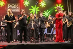 Najlepšim melodijam Matjaža Vlašiča v izvedbi Pihalnega orkestra Mestne občine Kranj je na Glavnem trgu prisluhnilo skoraj dva tisoč ljudi. / Foto: Tina Dokl