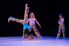 Iskrivost, zbranost, svoboda: na odru Prešernovega gledališča so mladi z gibanjem risali svetove, kjer domišljija ne pozna meja. / Foto: Primož Pičulin