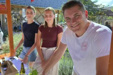 Jana Ovsenik, gospodarjeva sestra, nam je zaupala, da konec septembra in v oktobru pripravljajo na kmetiji tudi delavnico priprave štrukljev; na hitro nam je prišepnila še o Četrtkih z razgledom, gledališkem abonmaju KUD-a Predoslje; na stojnici pa si je prostor delila še s kmetijama Štirn in pa Matijovc.