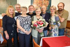 Platinasta zakonca Marija in Ivan Csipö ter njun sin Blaž Csipö (zadaj levo) z ženo Matejo, hči Judita Nahtigal (spredaj druga z leve) z možem Romanom in sin Dušan Csipö (desno) s partnerico Vanjo Šisernik / Foto: Tina Dokl