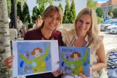Jadranka Završnik (levo) in Nežka Kukec z novo slikanico o Stricu Poklicu / Foto: Mateja Rant