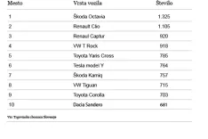 Najbolj priljubljena ostaja škoda octavia, sledita renault clio in renault captur. Med prvo peterico sta še volkswagen t-rock in toyota yaris cross. Med prvih deset se je prvič uvrstila električna tesla y, letos do oktobra so prodali kar 764 teh vozil.
