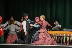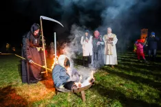 Krsta s truplom pusta, ob njem pa so (z leve): ta stara, vdova Johana in ta star / Foto: Tina Dokl
