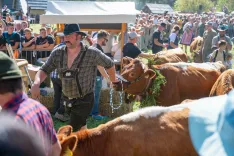 Največ navdušenja je pričakovano prinesel sprevod planšarjev, ki so se s kravami spustili z višje ležečih pašnikov. V dolino so pripeljali 40 okrašenih krav, ki so s pisanimi venci, zvonci in trakovi postale prave zvezde prizorišča. Posebno poglavje Kravjega bala je vsako leto posvečeno izboru najlepše cike. Letos je sodelovalo osem rejcev, med njihovimi kravami pa je komisija, ki so jo sestavljali strokovnjaki s Kmetijsko-gozdarske zbornice Slovenije – Matjaž Hribar, Igor Stanonik in Jernej Mavhar –, najprej izbrala najlepšo kravo vsakega rejca, nato pa še absolutno zmagovalko. Naziv najlepša cika 2025 je osvojila krava Seka rejca Igorja Korošca. Ob razglasitvi je požela bučen aplavz, obiskovalci pa so jo takoj okronali za pravo zvezdo dneva.