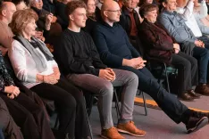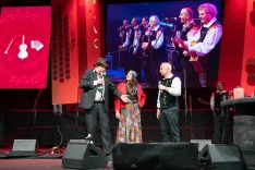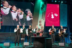 Andrej Bergant, edini še živeči ustanovni član Fantov s Praprotna, je na koncertu turneje Slakova glasba v Železnikih požel stoječe ovacije. / Foto: Simon Benedičič